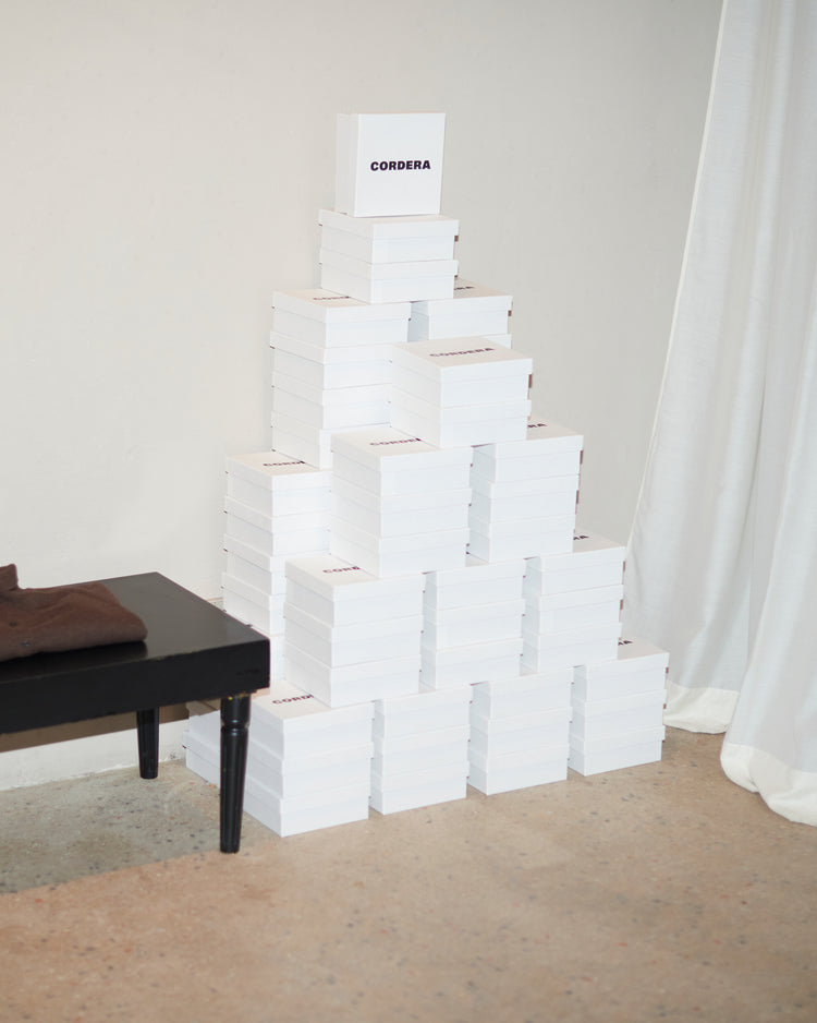 Cordera presented its FW25 Collection at Paris Fashion Week, hosted at the exclusive CØR Studio in Le Marais. The event, blending fashion and culinary art, featured over 70 guests in an intimate, elegant setting. Curated by renowned New York-based culinary artist Laila Gohar, the installation reflected Cordera's values of sobriety, elegance, and uniqueness, with high-quality materials and innovative designs. A captivating culinary performance included cheese and charcuterie chandeliers, a life-size salmon swan, and a striking one-meter-high cake as the grand finale.