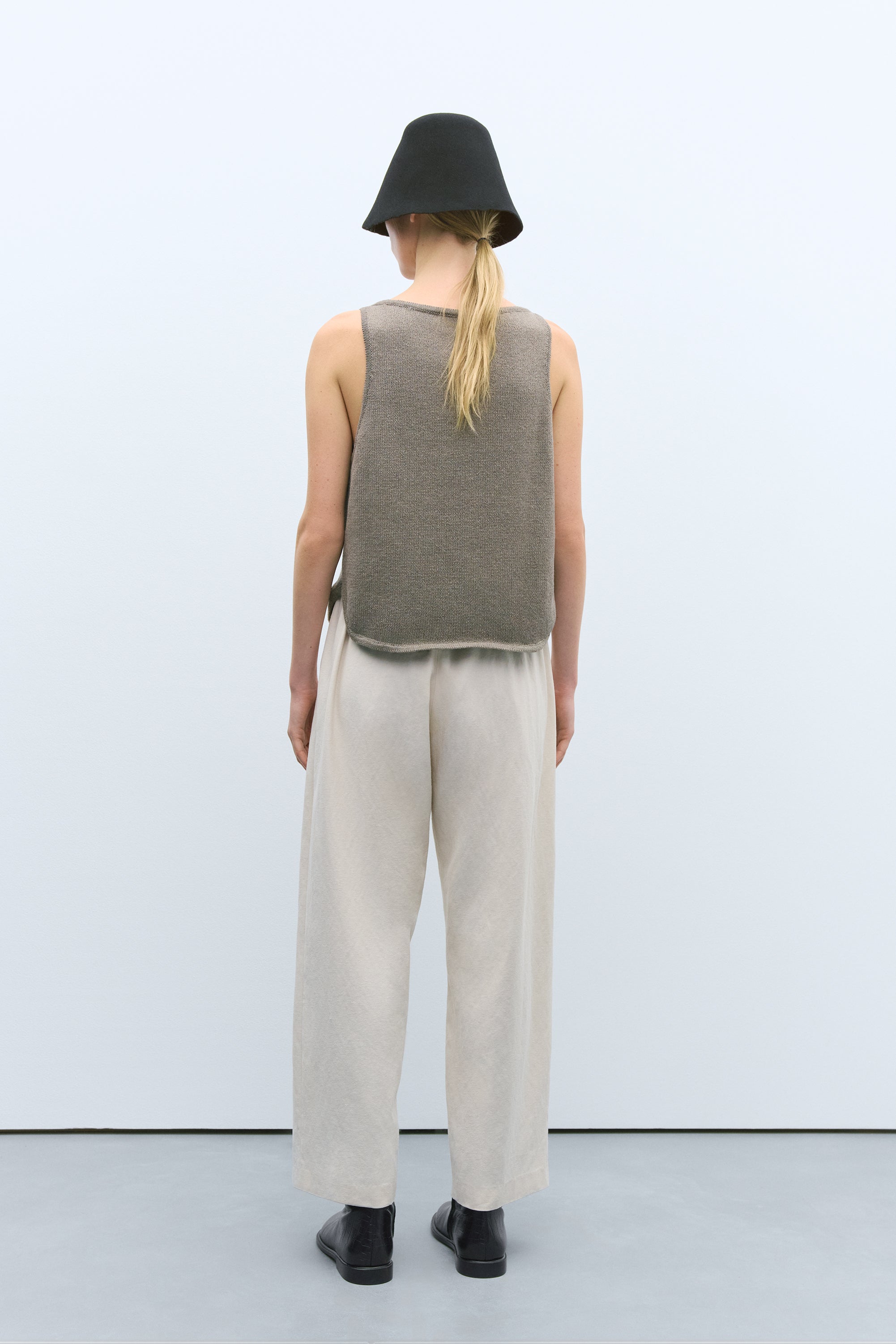 Crafted from a soft and durable cotton blend, this vest is designed for a boxy fit and features a buttoned closure on the front, with welted pockets and detailed with boat neckline. Minimal, classic and easy to throw on.