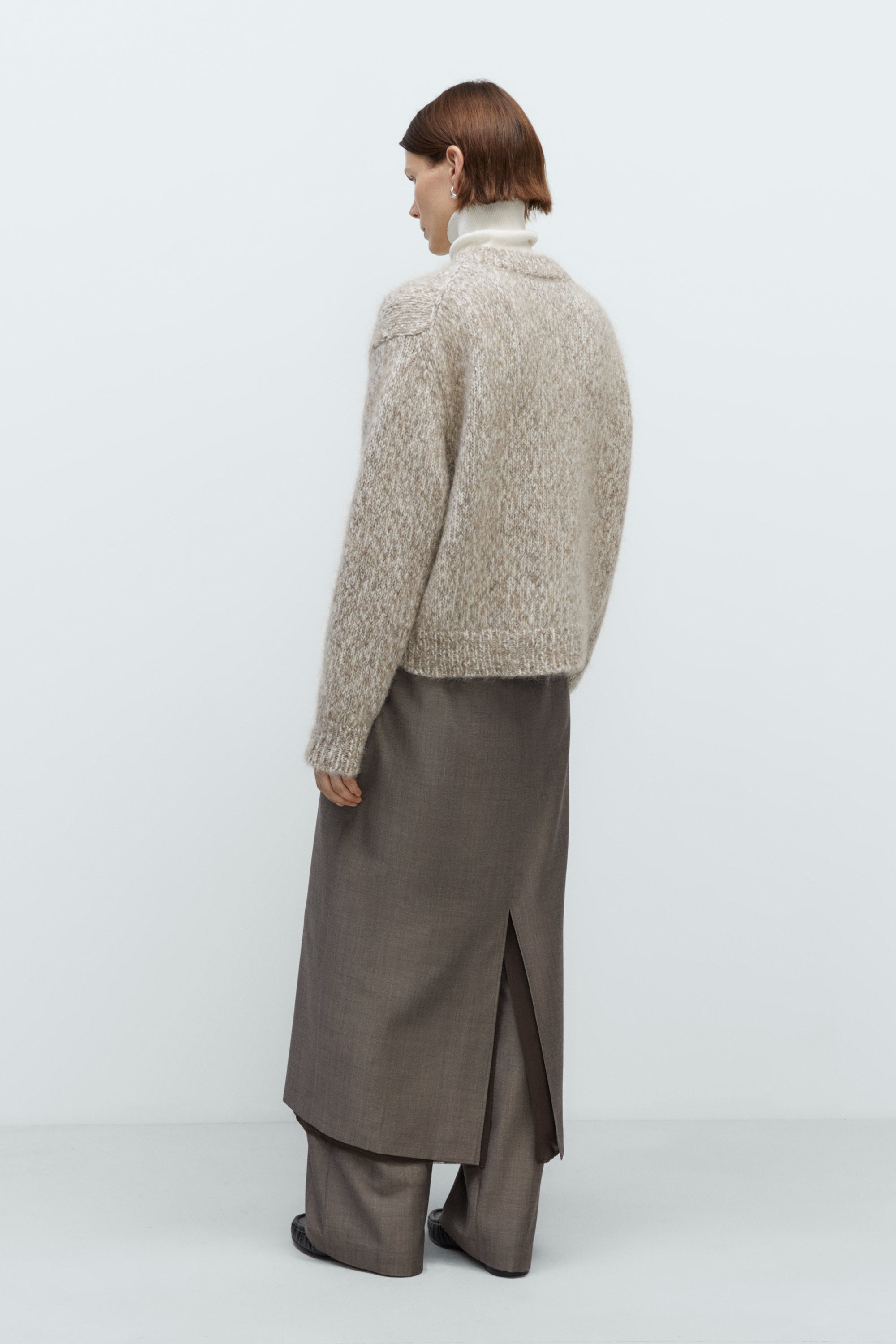 Regular boxy fit with a crewneck, featuring ribbed cuffs and hem. A cozy, basic sweater in a warm beige melange, offering both comfort and style for colder days.
