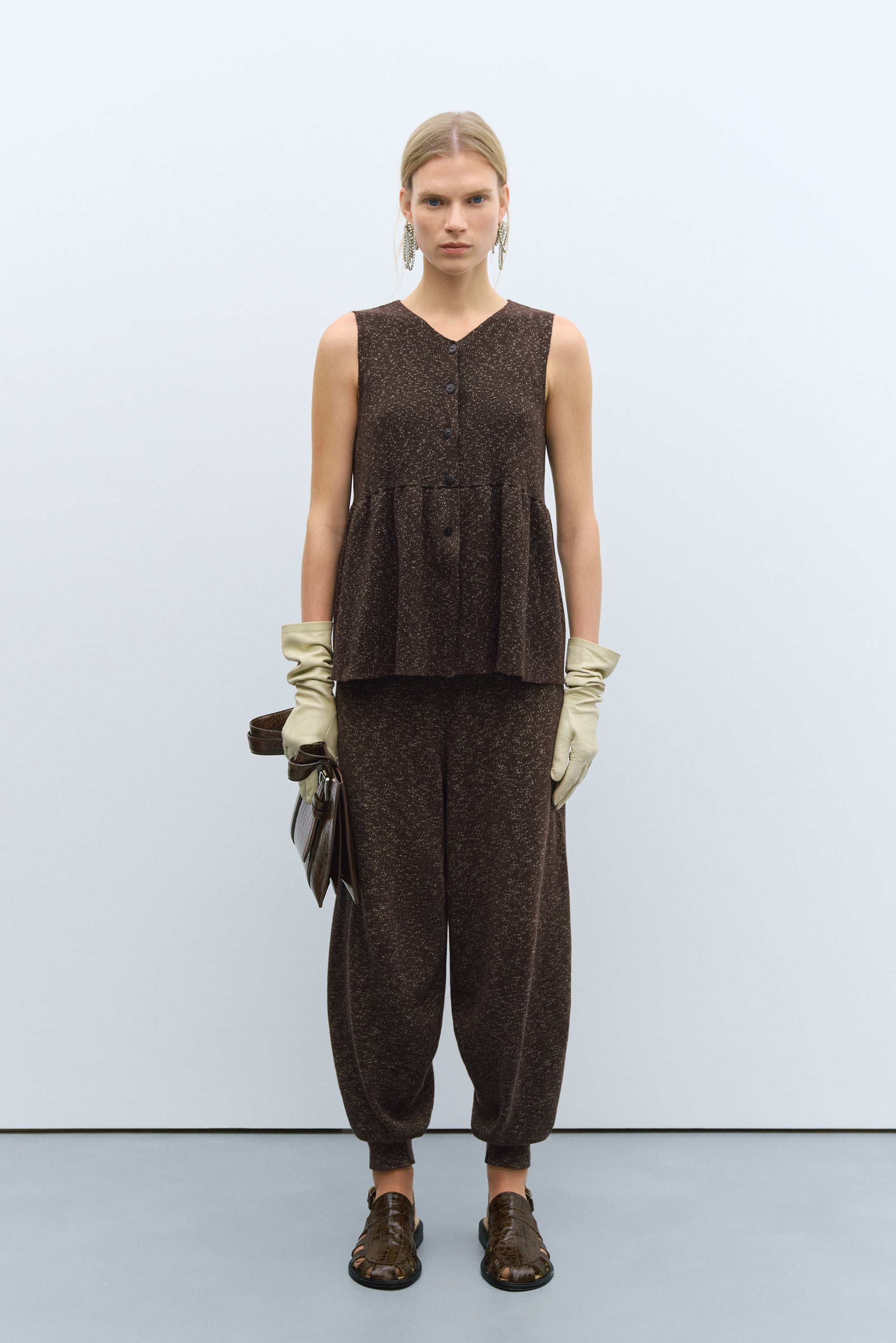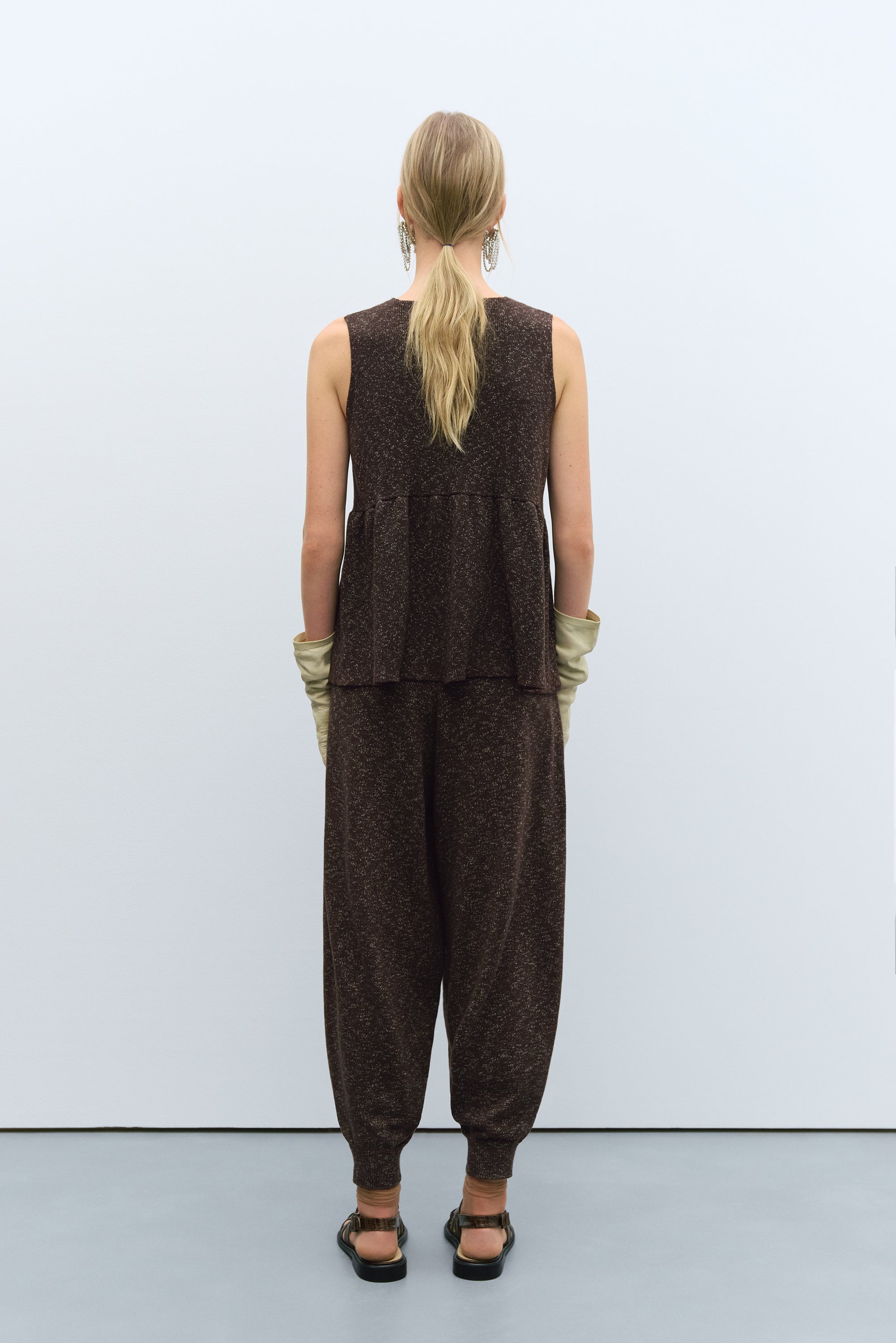 FLECKED COTTON PEPLUM TOP BROWN