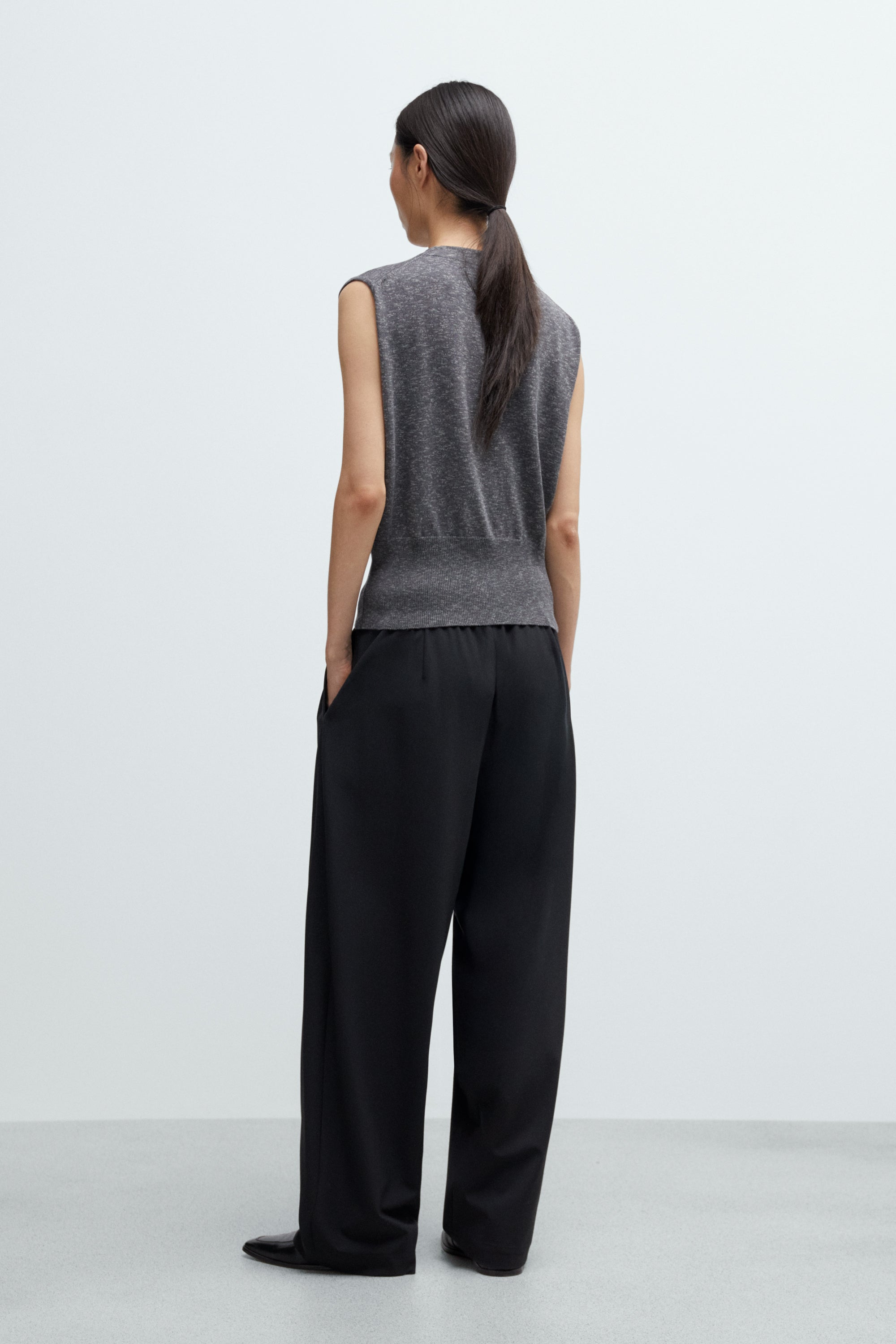 This flecked cotton waistcoat features a regular fit with a relaxed upper silhouette and a defined, high ribbed waistband for a flattering shape. Designed with a V-neckline and button-up front, it has wide arm openings that enhance its ease and comfort. Made from superior cotton with subtle flecked texture, it’s a versatile piece that layers effortlessly or stands on its own.