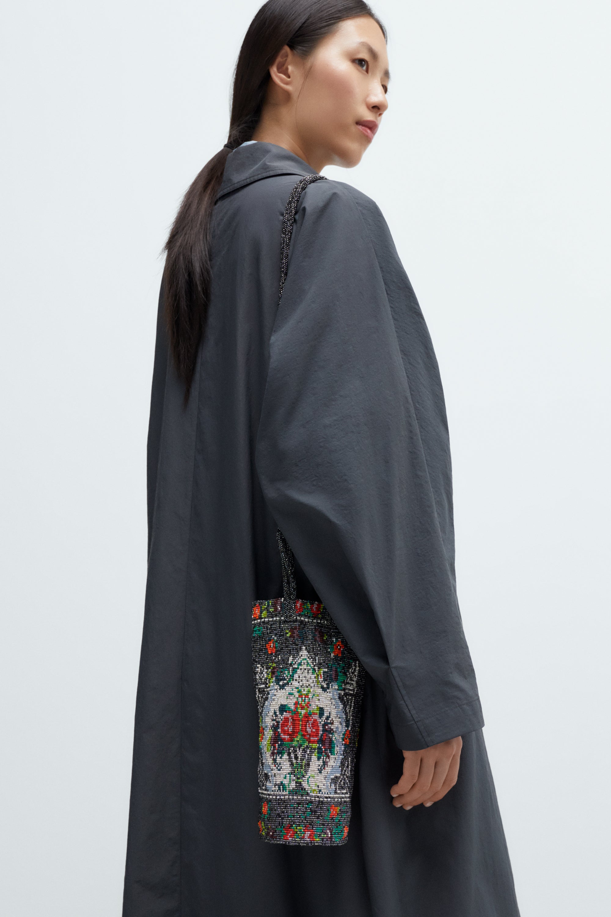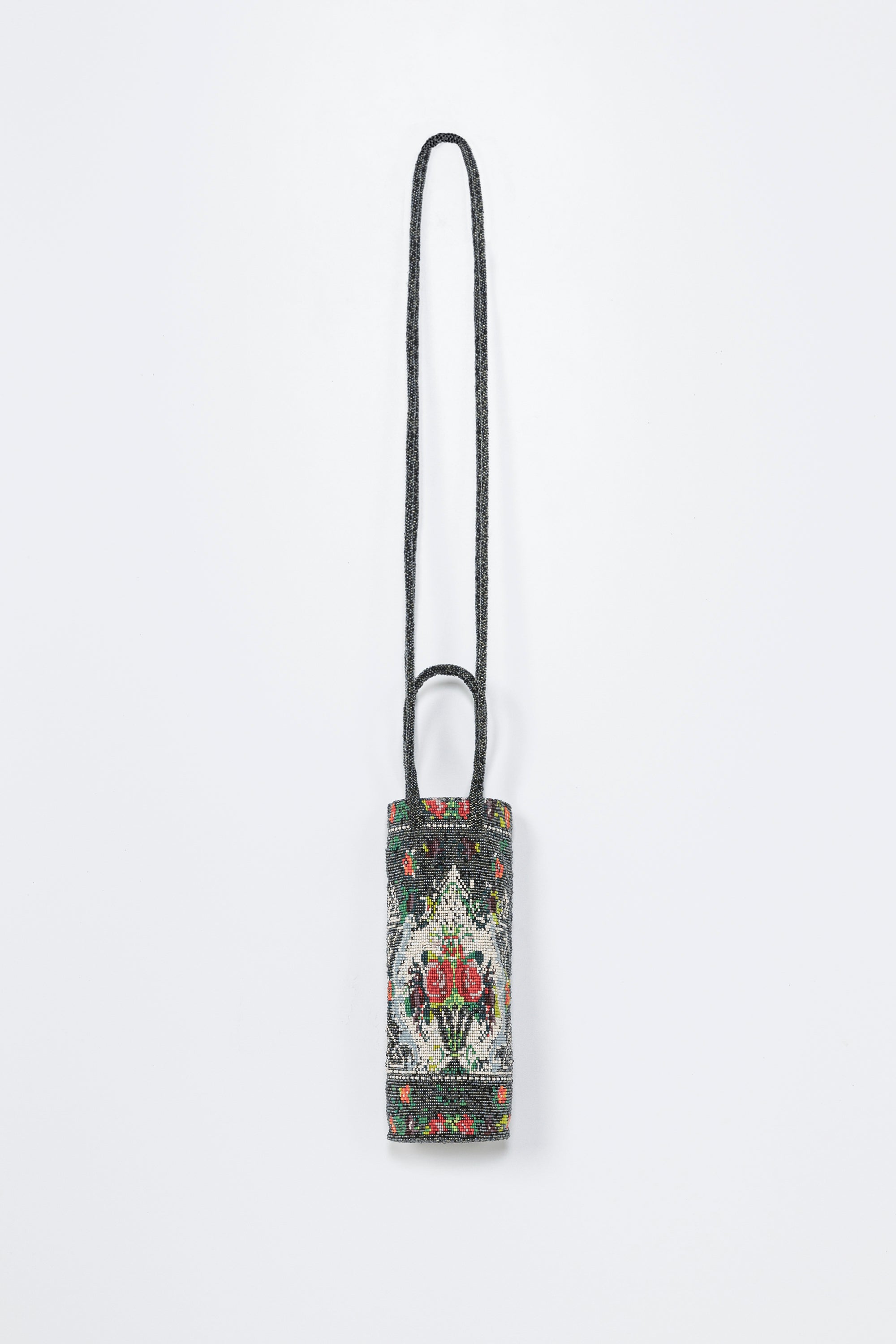 This unique piece is the result of a collaboration between CORDERA and a women's community in Central America. A handmade beaded handbag featuring floral motifs and a charming bottle-shaped design. It includes a double hand strap and a double shoulder strap, offering versatile carrying options.