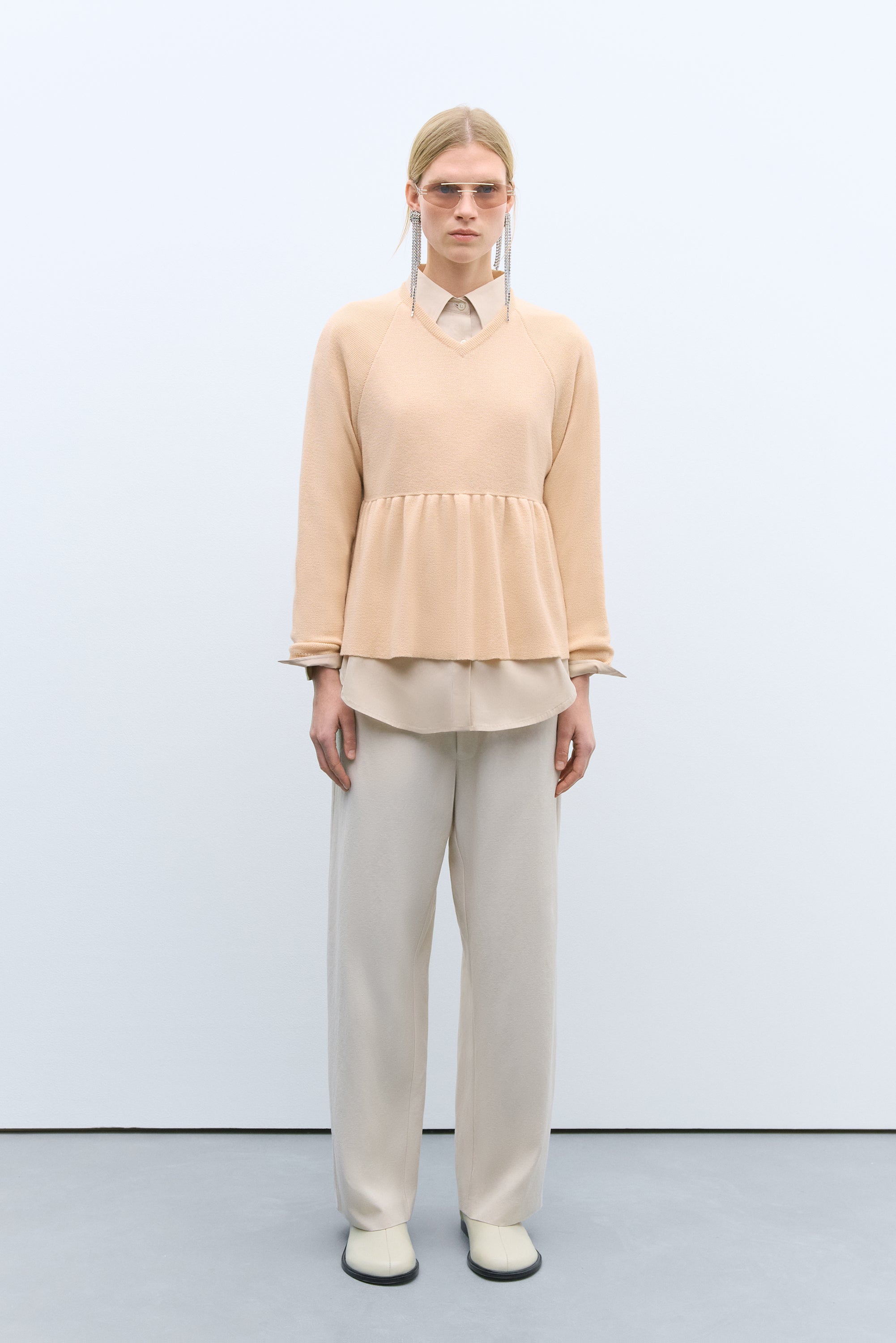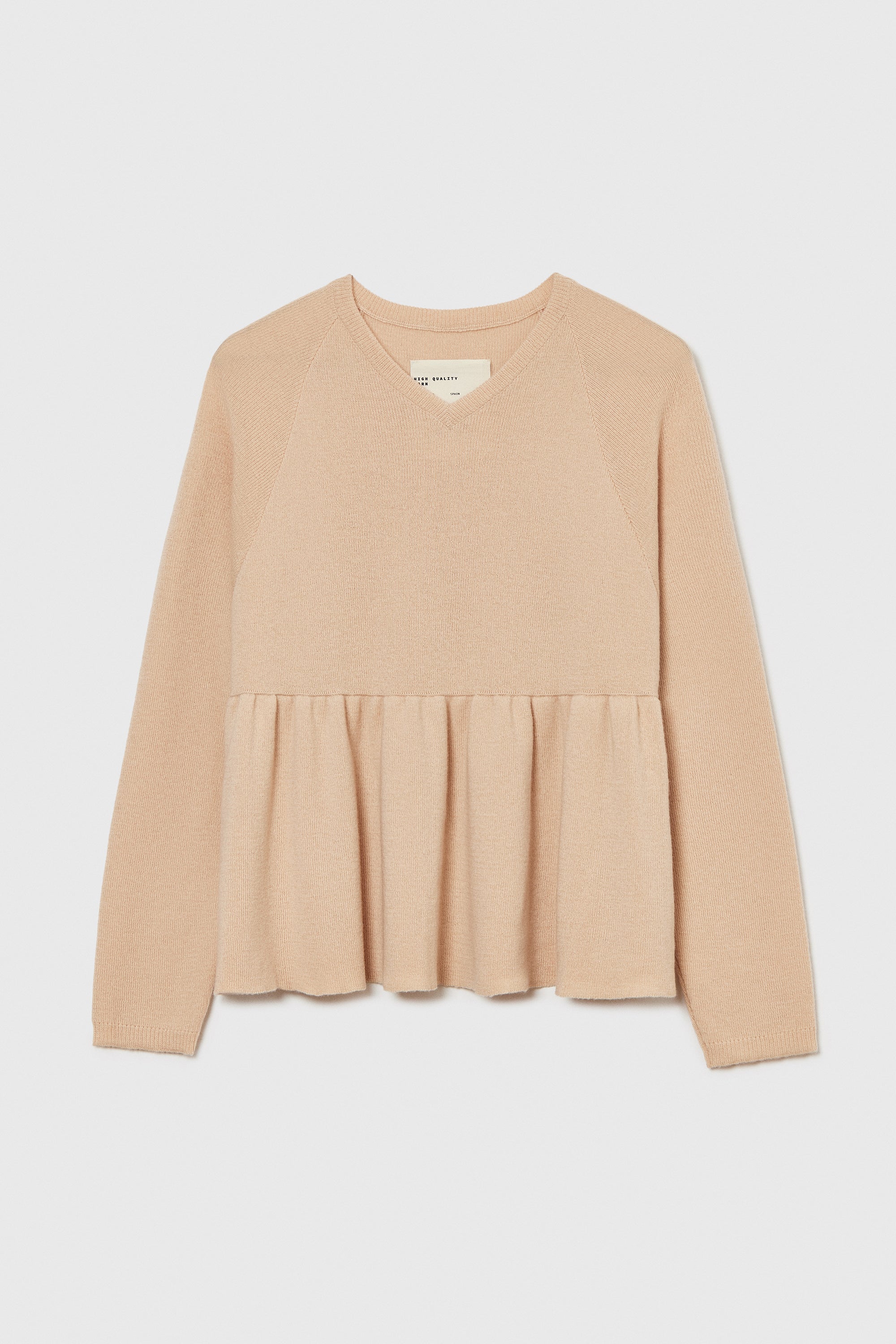 MERINO & CASHMERE PEPLUM TOP PEACH