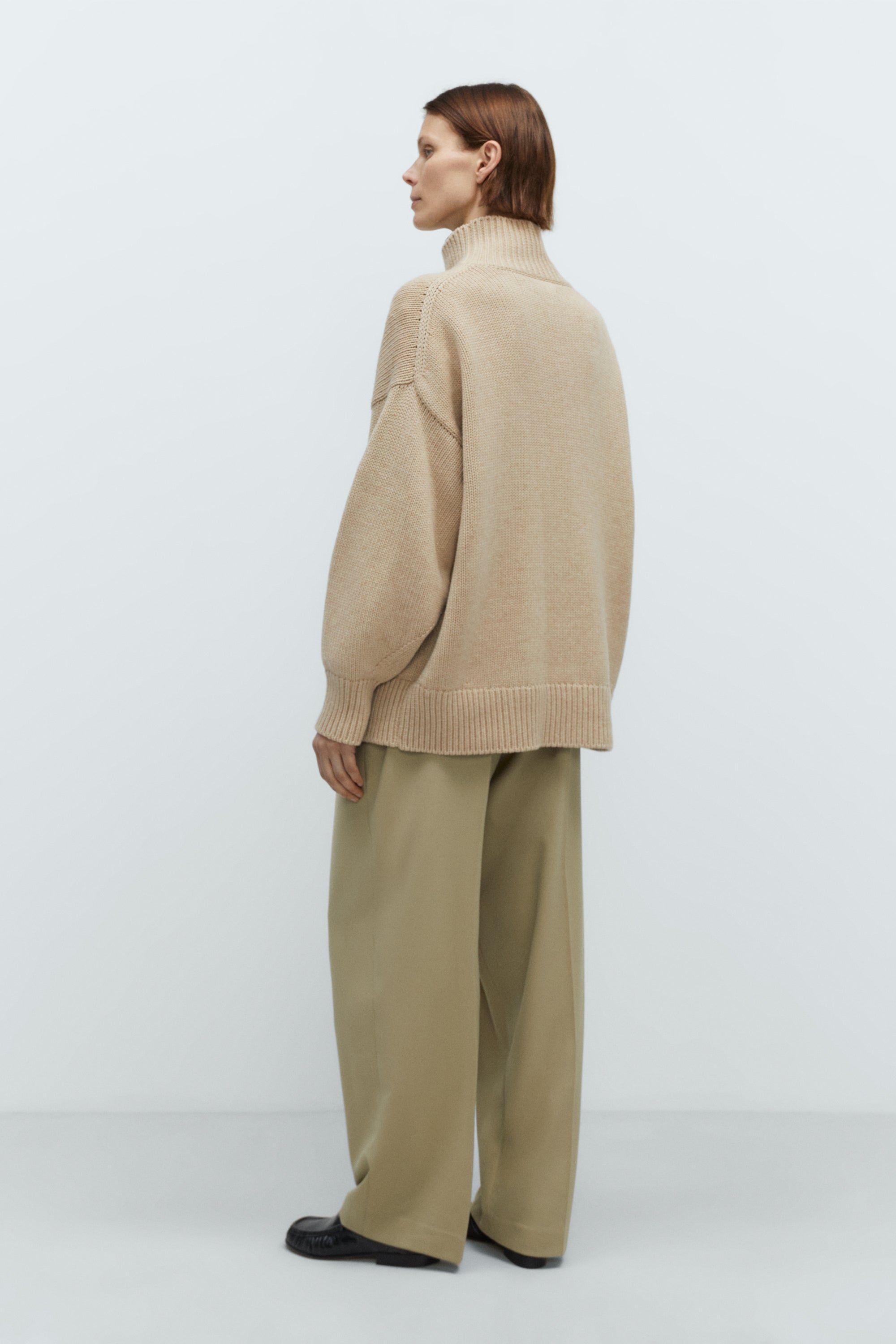 Oversized fit with a high neckline and ribbed cuffs. Crafted from chunky, ultra-soft Merino Wool for maximum comfort. Easy to wear and perfect for a cozy, laid-back look, this sweater will be a staple in your winter wardrobe.