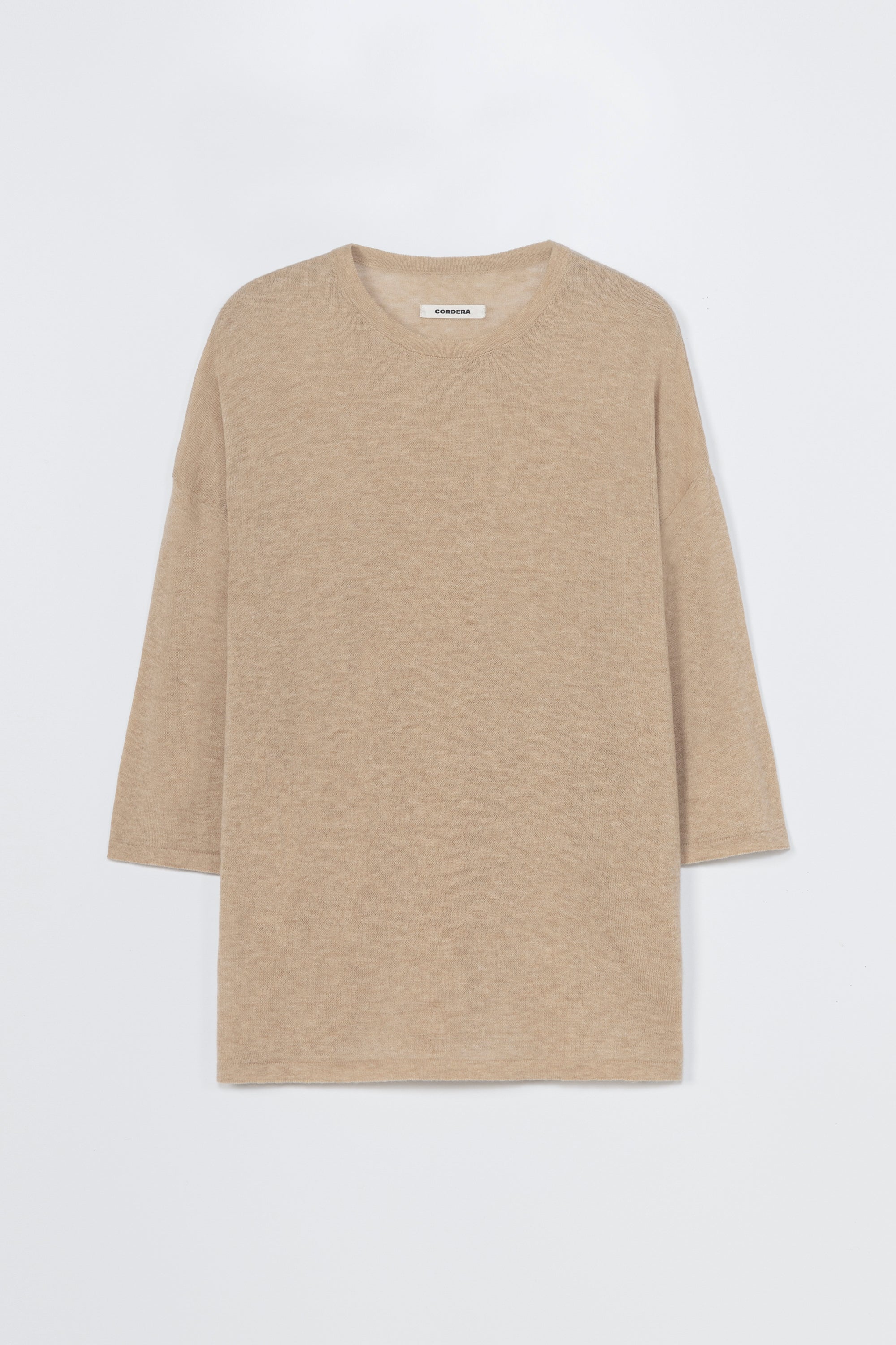 This oversized t-shirt is crafted from a extrafine merino wool. Features a relaxed silhouette with dropped shoulders and 3/4 sleeves. Finished with a classic crewneck. Light and effortlessly comfortable, it's perfect for everyday wear.