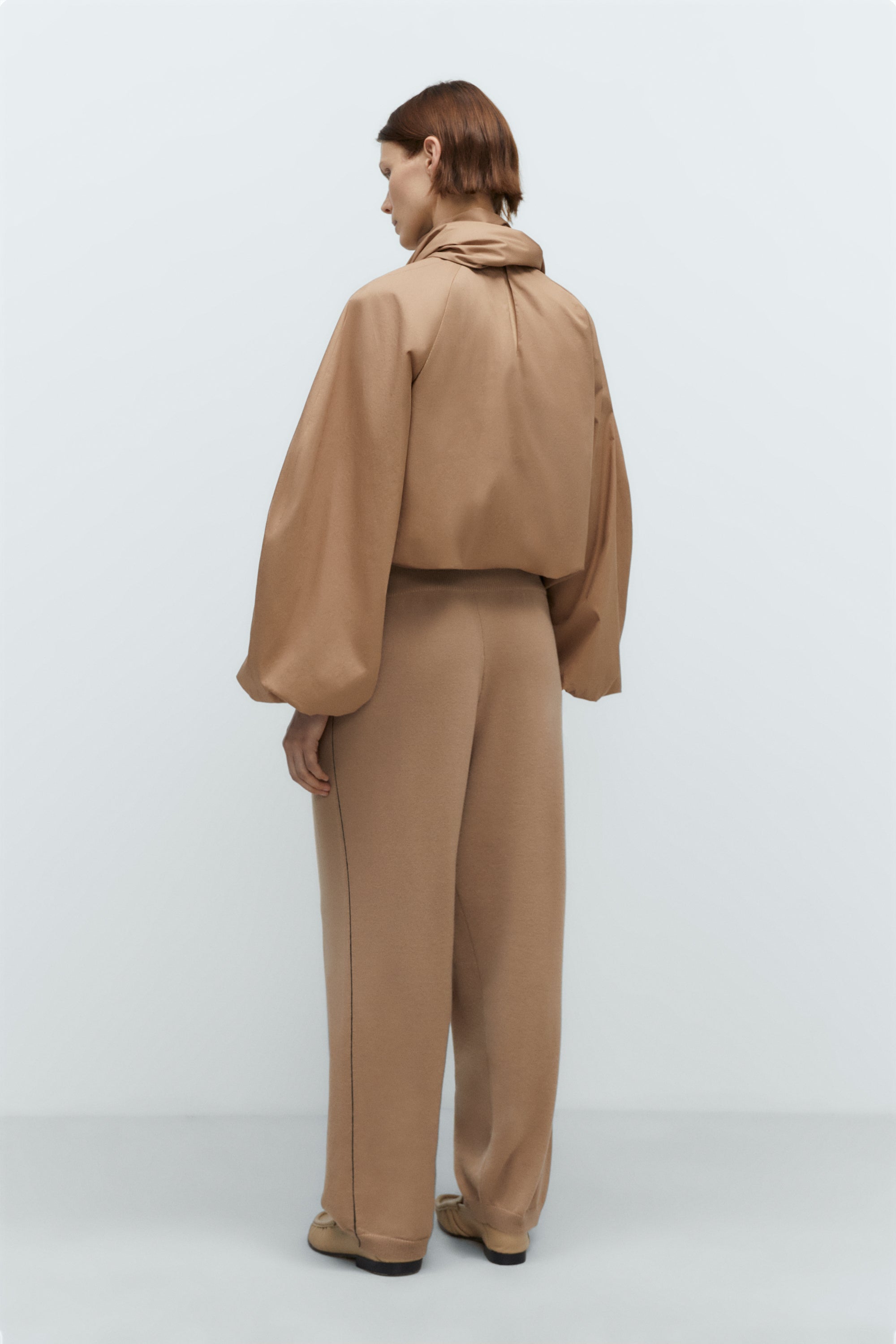Straight-leg oversized pants crafted from the softest Extrafine Merino Wool; featuring elastic accents at the waist and hem for a relaxed fit. The design is complemented by a sleek, thin black side stripe that adds a subtle touch of contrast.