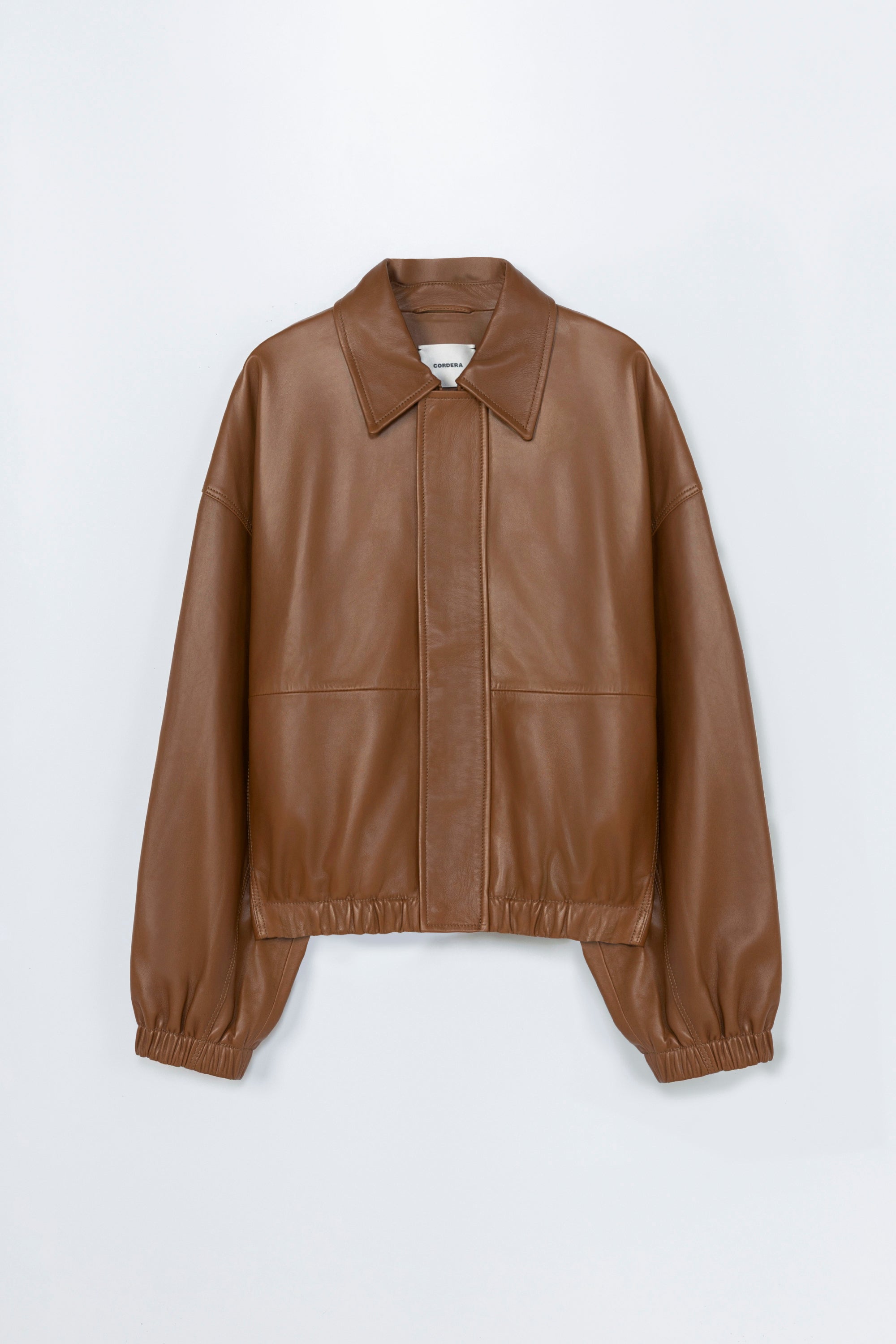 Lamb leather of the highest quality for this iconic garment, carefully crafted. Classic bomber shape with elasticized waistband and cuffs, side pockets, and a zipper closure beneath a snap-button placket. Finished with a lined interior in 100% Viscose for added comfort. A piece for a lifetime.