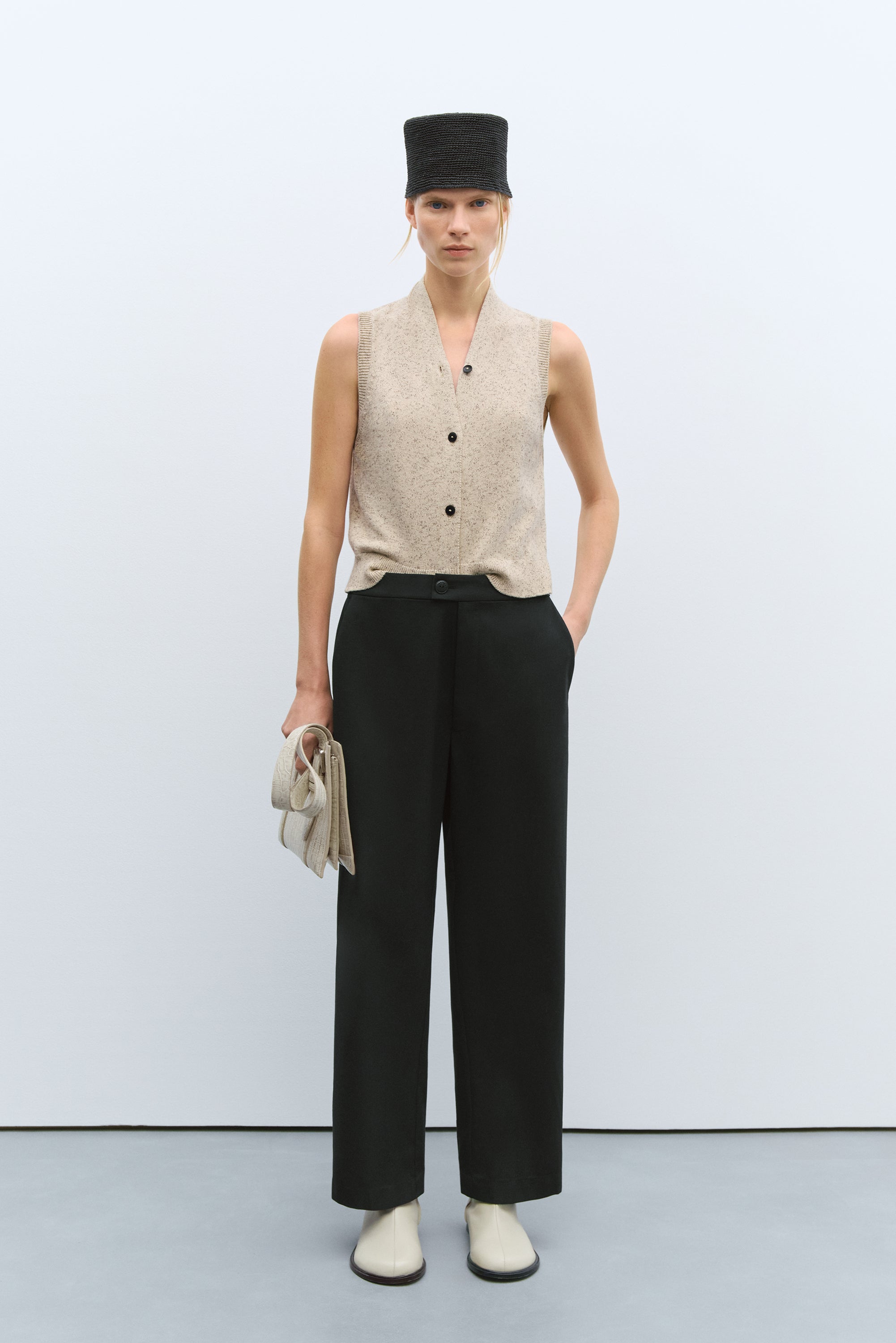 Tailored straight-leg pants with a regular fit, perfect for both formal or cassual wear. Designed for comfort and crafted from high-quality materials, they feature an elasticated waistband at the back, a concealed zip with a flap, side pockets and a button closure.