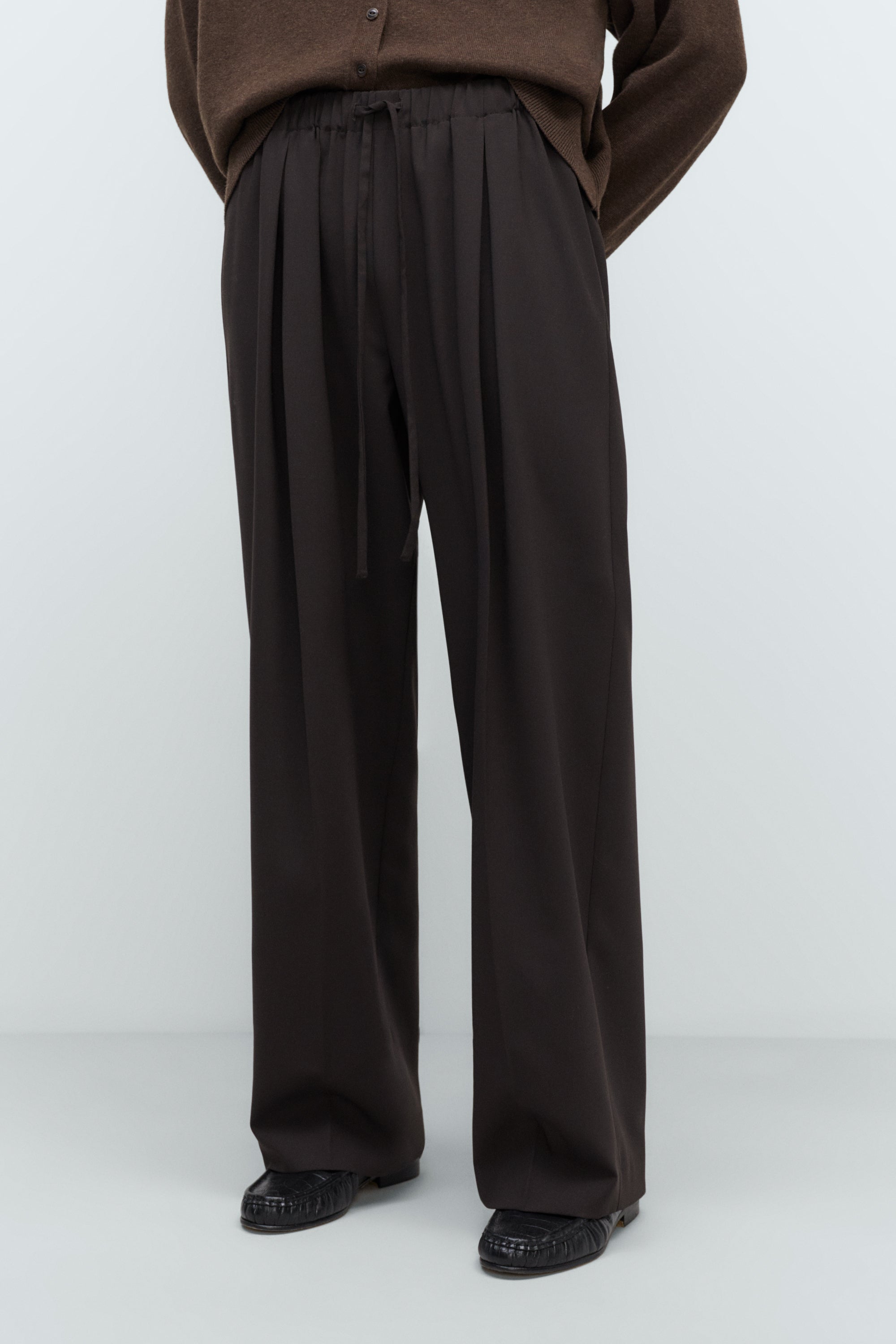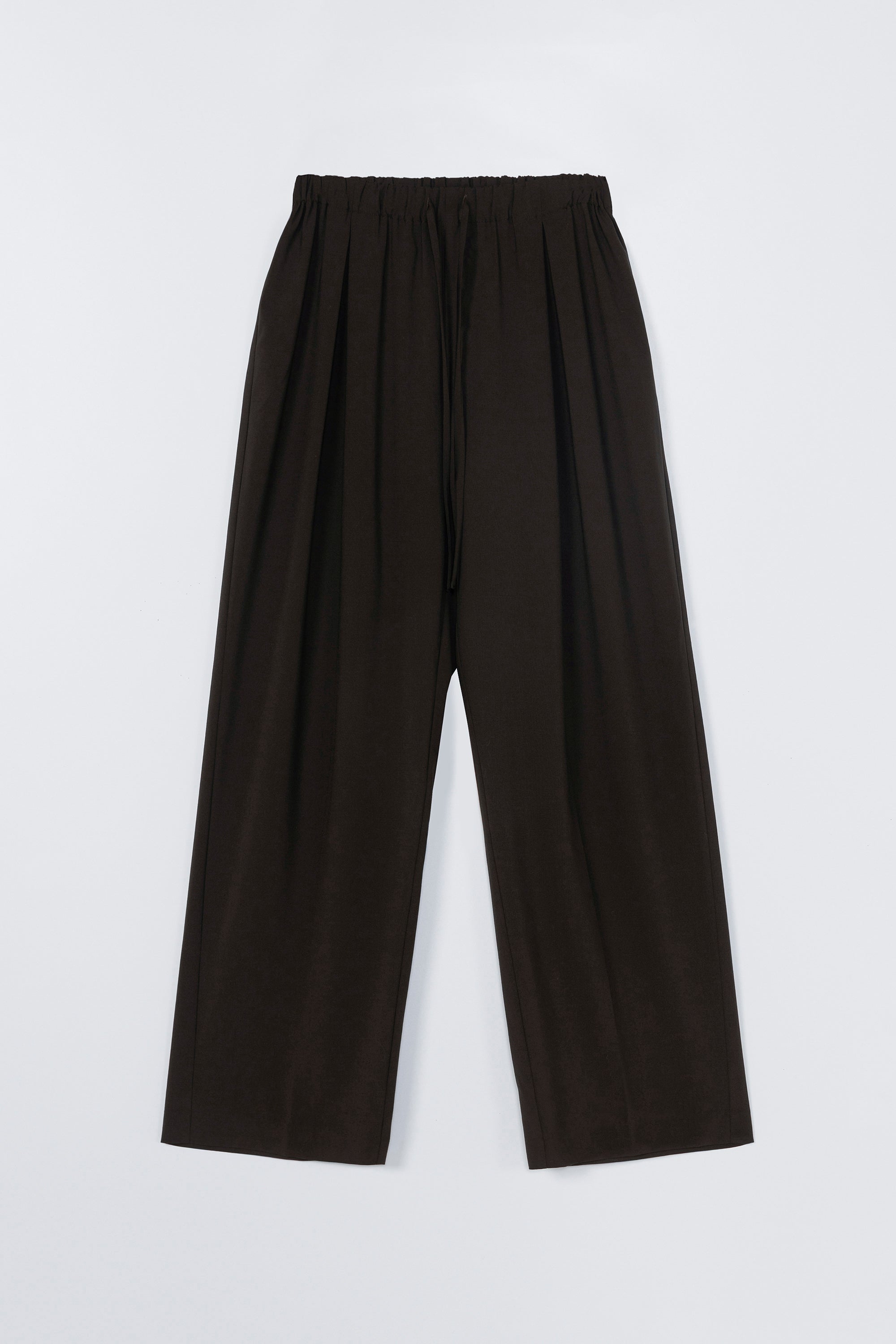Relaxed-fit pants with an elastic waistband and adjustable drawstring. Designed for maximum comfort with stylish details. Made from lightweight fabric, they’re perfect for year-round wear. Detailed with sharp front and back pleats along the legs, as well as faux back pockets.