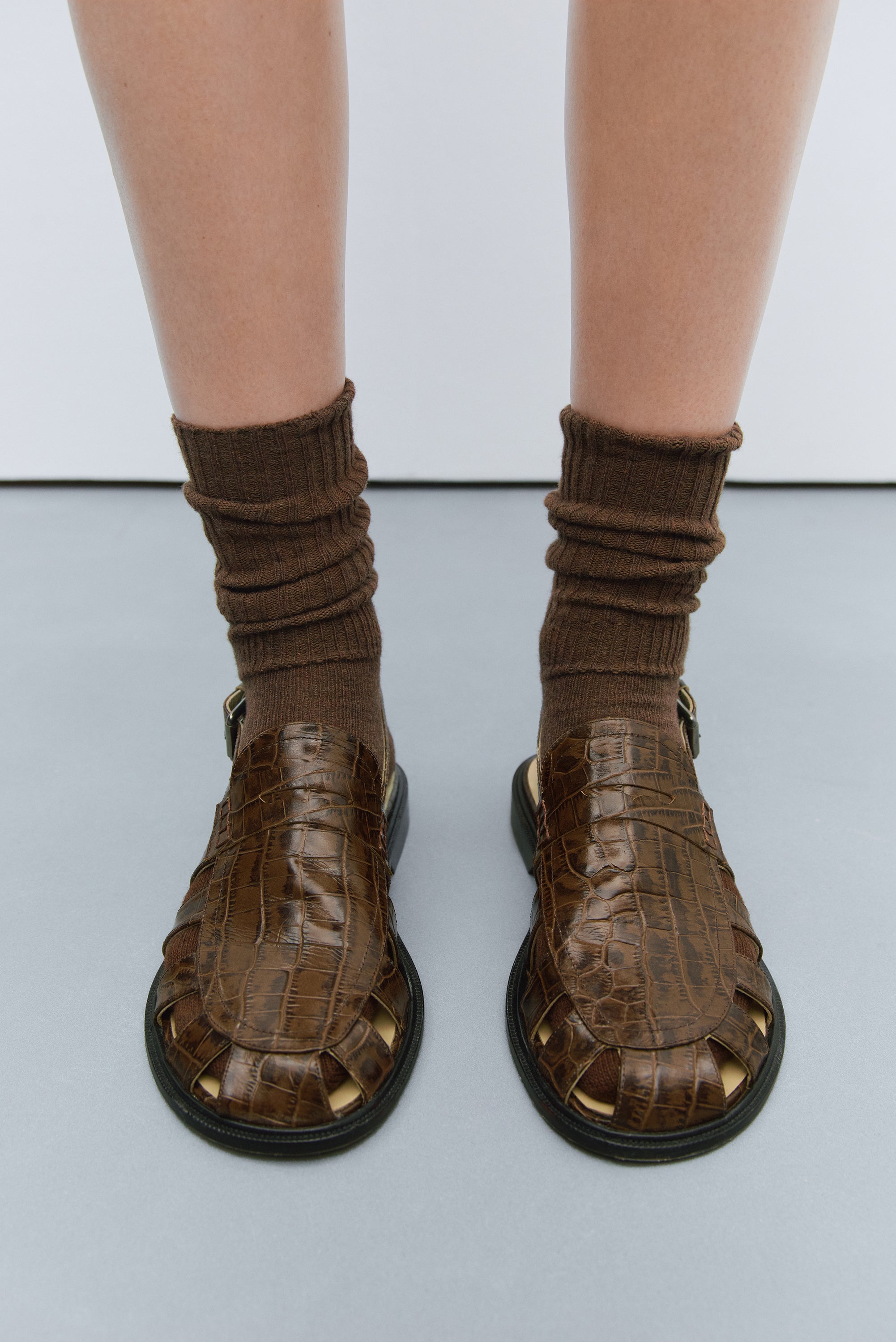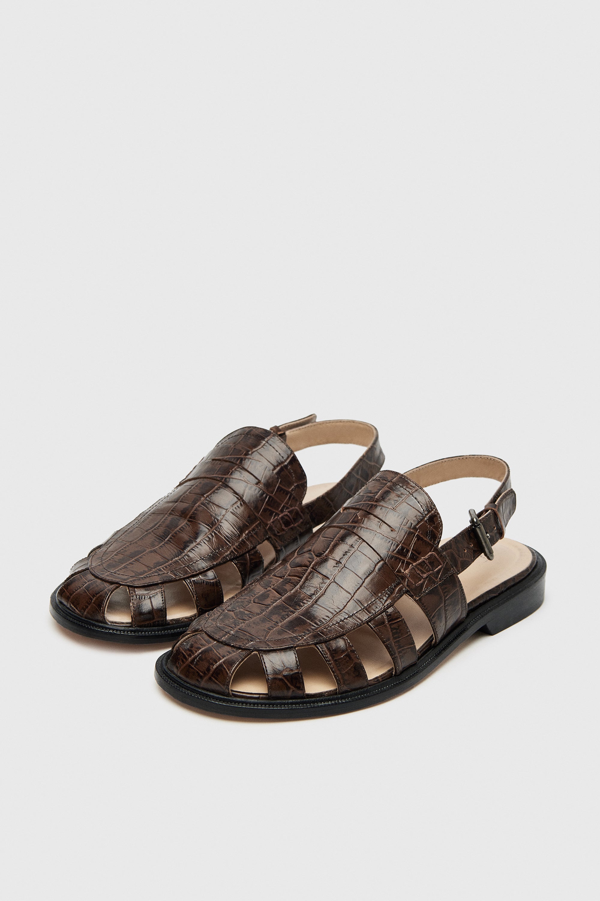 This slingback loafer is distinguished by its round shape and cut-out front detail. Made from high-quality calfskin, its softness makes it perfect for all-day wear. It also features a sophisticated brown crocodile texture, adding a unique and elegant touch. Pair them with a tank top and your favorite jeans for a stylish yet comfortable look.