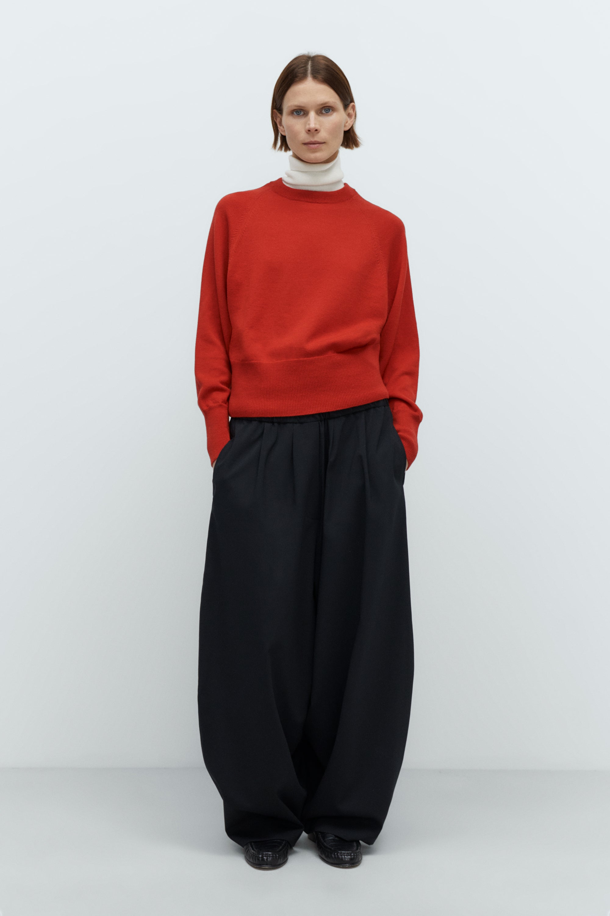 A Cordera classic revisited. Maxi volume defines these relaxed-fit pants, crafted from tailoring fabric that gives them a refined look. Detailed with an elastic waistband and drawstring, side pockets, and a fluid silhouette.
