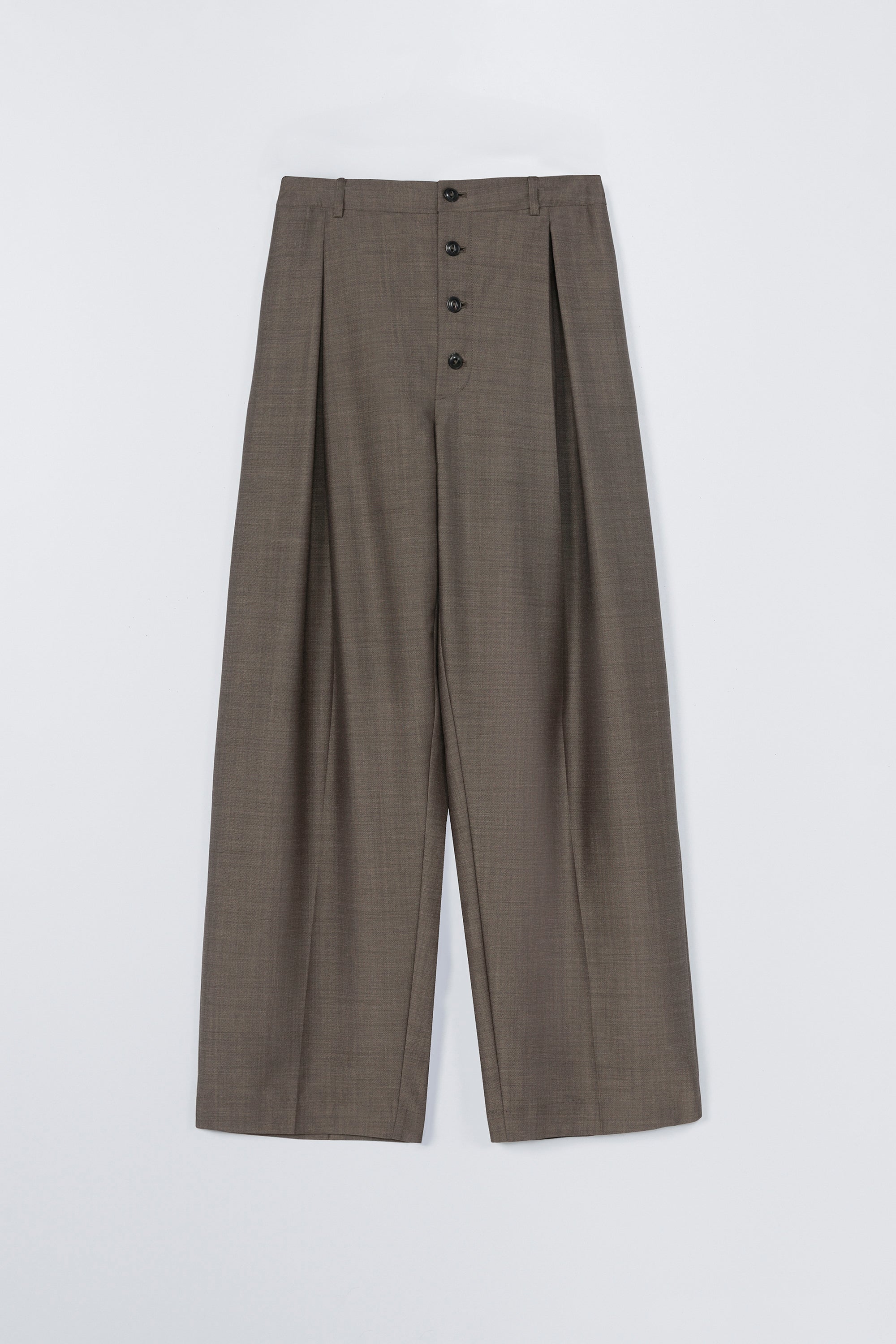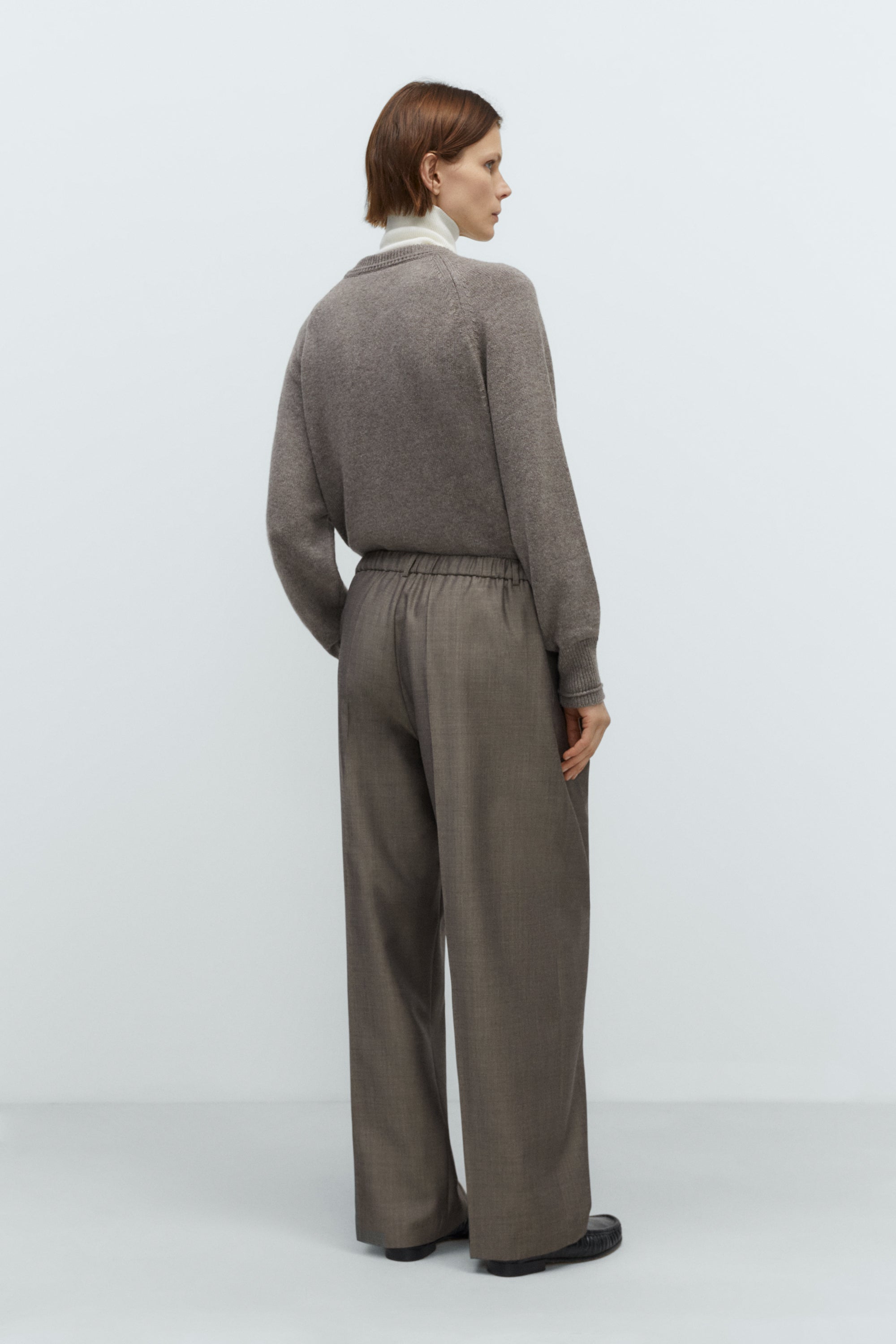 Straight-leg pants with pronounced front pleats that accentuate volume. Detailed with belt loops, side pockets, and a visible buttoned front closure instead of a zipper for a tailored touch. Lined with 100% viscose for comfort, these pants offer a lightweight feel with the warmth of mohair. A perfect fit with a refined, stylish look.